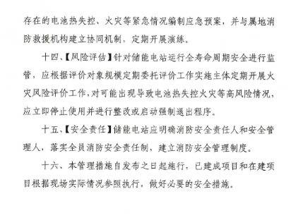 另外一部分是電化學(xué)儲(chǔ)能電站消防安全管理若干措施。重點(diǎn)內(nèi)容包括: