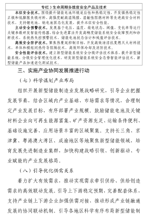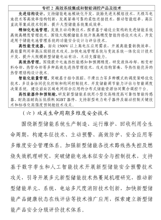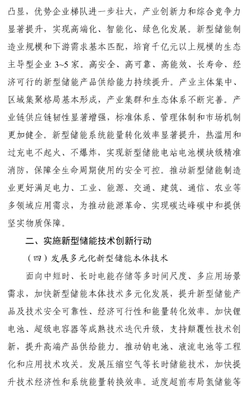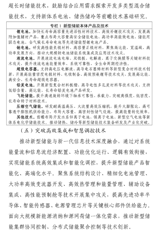 新型儲(chǔ)能本體產(chǎn)品及技術(shù)、系統(tǒng)集成、全生命周期安全列入技術(shù)創(chuàng)新行動(dòng)三大重點(diǎn)行動(dòng)。
